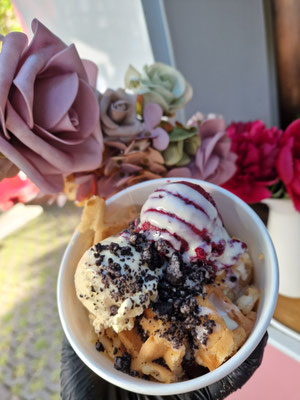 Ein besonderes Highlight unseres Angebots ist die Kombination aus frisch gebackenen, duftenden Waffeln und cremigem Kugeleis. Unser Foodtruck Waffeln und Eis Angebot ist stets ein Publikumsmagnet und sorgt für Begeisterung bei Ihren Gästen. Wählen Sie aus einer Vielzahl von Toppings, Früchten der Saison und Saucen, um Ihr individuelles Desserterlebnis zu kreieren.